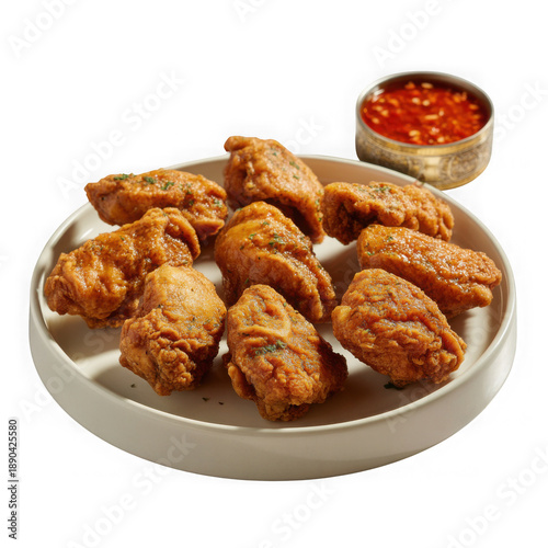 Spicy fried chicken wings with herbs and dipping sauce
