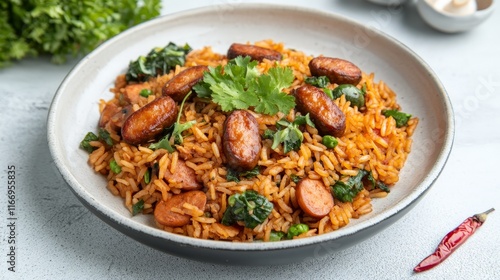 Spicy Fried Rice with Sausages and Mushrooms Plating