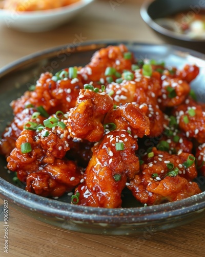 spicey, korean, chicken, hot, sauce, thick, food, cookery, fried, wing, flavorful, red, pepper, dish, asian, savoury, chili, heat, traditional, meal, marinated, lemony, glazed, sticky, bar-b-q, tasty, mouth-watering, rich, favor, garnish, appetising, photo, culinary, seoul, peppery, intense, explosion, fiery
