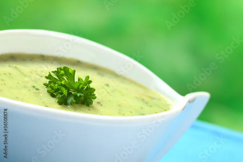 Spinach cream soup garnished with parsley