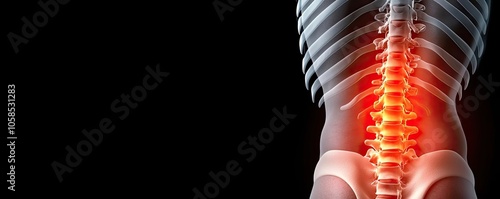 Spine anatomy with highlighted pain area, black background