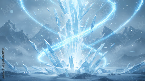 spiral, energy, ribbon, twist, coil, swirl, swirled, vortex, geyser, spout, plume, ice, crystal, shard, burst, explosion, glow, shine, luminescent, blue, teal, dramatic, epic, storm, flare, abstract, scene, snow, frost, winter, cold, arctic, polar, glacier, glacé, chill, aurora, sky, star, space, nebula, galaxy, mountain, peak, vale, horizon, dune, drift