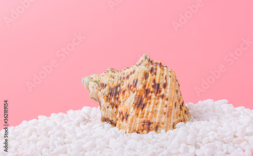 Spiral shell closeup on pink background