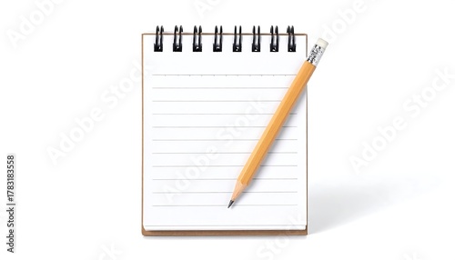 Spiral-bound notebook with a pencil lying on its lined, white pages