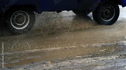 automobile, car, dirty, flood, motion, moving, mud, puddle, rain, road, splash, splashing, street, tire, transportation, vehicle, water, weather, wheel, tyre, truck, rubber, flat, old, auto, black, metal, offroad, transport, jeep, wheel, snow, white, isolated, winter, drive