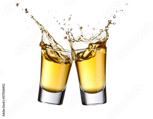 Splashing Tequila Shot in Motion – Dynamic Beverage Concept on White Background