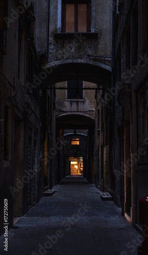 Spooky back alley during evening hours.Italy