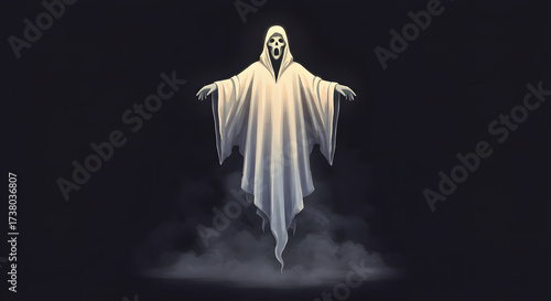 Spooky Ghost Figure Illustration in Darkness