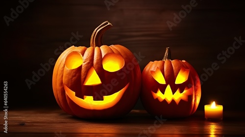 Spooky halloween pumpkin glowing face Jack o lantern