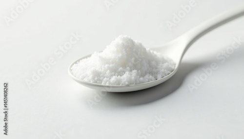 Spoonful of white sugar against a stark white backdrop, dessert, ingredient
