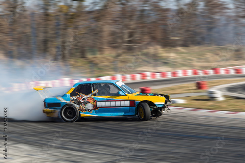 Sport car burnout on the track