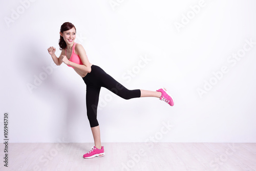 sport woman kick something