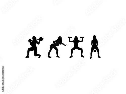 Sport woman silhouettes isolated on white background. Vector gym silhouette.
