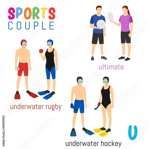 Sports Couple alphabet in vector with U letter. illustration cartoon sports. Alphabet design in a colorful style.