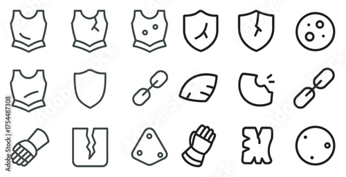 Sports equipment outline icons set – linear, fitness, athletic gear symbols.