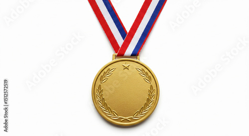 Sports medal with ribbon isolated on white, shiny and clean, perfect for award or victory stock photos.
