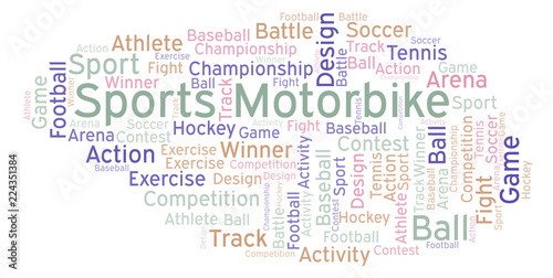 sport, motorbike, game, football, design, championship, ball, baseball, competition, activity, athlete, action, competitive, exercise, winner, track, arena, battle, contest, soccer, fight, tennis, hockey, word, cloud, bubble, text, greeting, card, poster, print, font, free, font, illustration, colours, bright, typography, rendering, tags, concept, three-dimensional, background, white, isolated, collage