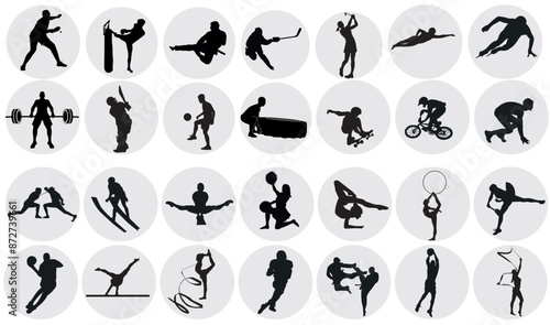 sport, club, silhouette, race, soccer, handball, golf, run, dance, illustration, marathon, walk, triathlon, nordic walking, tennis, weight training, vector, union, logotype, people, person, flat, set, icon