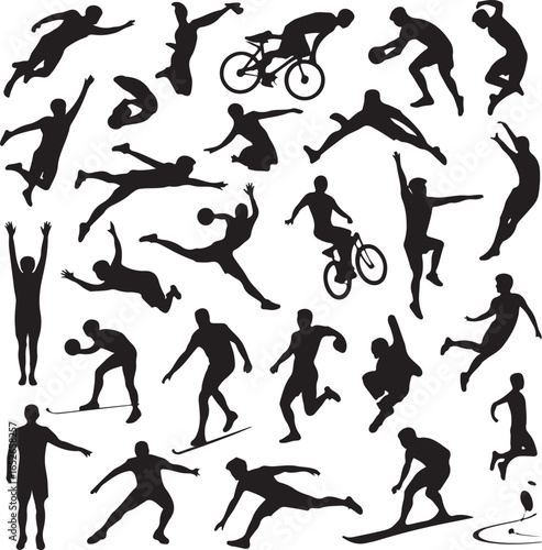 Sports Silhouette Vector Set – Athletes in Action Football, Basketball, and Running Player Silhouettes Fitness and Sports Vector Bundle for Logo and Design