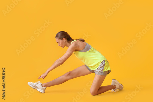 activity, adult, athlete, background, beautiful, body, care, casual attire, caucasian, colours, doing, exercise, exercising, female, fitness, girl, gym, gymnastics, healthy, hobby, leisure, lifestyle, mat, modern, people, person, pilates, portrait, pretty, shape, sport, sport, activewear, sporty, style, stylish, training, trend, trendy, woman, physical exercise, yellow, yoga, young