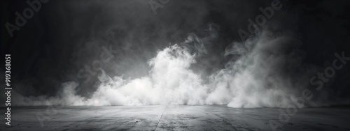 Spotlight beam illuminating a foggy stage in a dark, empty space