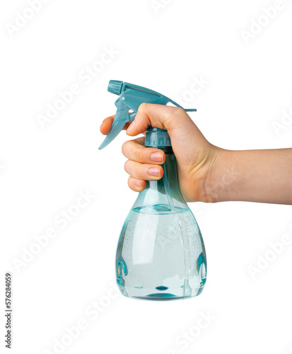 spray, bottle, isolated, blue, sprayed, gun, hand, hold, plastic, spray bottle, water, mini, flower, white, background, cleaning, glasses, cleaner, cleanser, window, detergent, flask, agent, disinfectant, clean, container, liquid, pray, man, mist, hair, trigger, household, fashion, concept, green, colours, garden, work, transparent, humidifier