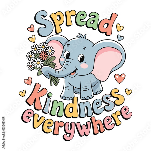 Spread Kindness Everywhere Elephant with Flowers T Shirt Design