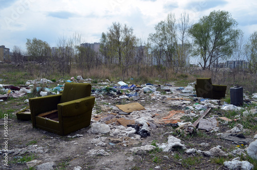 Spring landscape.Ecology of Ukraine. Nature near Ukrainian capital. Environmental contamination. Illegal junk dump. . Kiev,Ukraine