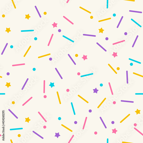 Sprinkle vector seamless pattern. Doughnut and ice cream dessert cute background.