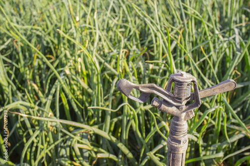 Sprinkler at onions field
