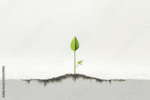 germinating, plant, growth, germ bud, leaf, minimal, background, simple, nature, green, ecology, environment, sustainability, eco, organic, clean, fresh, new life, beginning, hope, future, development, progress, rising, upward, concept, abstract, design, texture, white, grey, dirtied, earth, sustainable