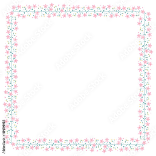 chaplet, frame, square, flower, pink flower, pink, green, garland, floral, plant, border, nature, background, bloom, blossom, cherry blossom, sakura, botanical, card, invitation, greeting card, illustration, design, clip art, vector