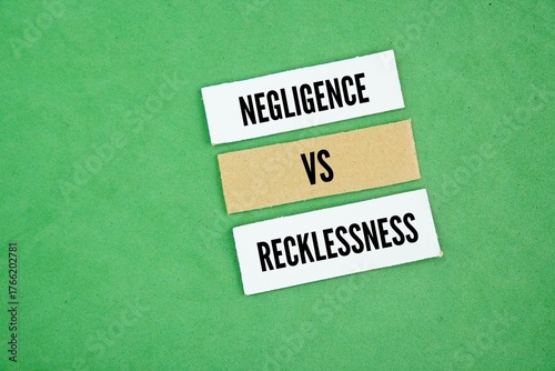 Square paper with the words Negligence vs Recklessness. Negligence is the failure to exercise reasonable care, while recklessness is a conscious disregard for a substantial and unjustifiable risk.