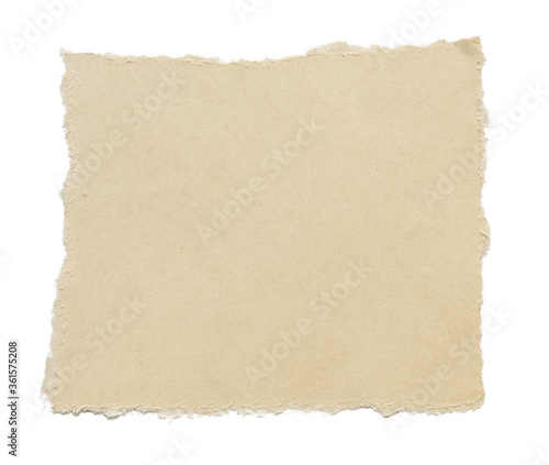 Square piece of paper with torn edges isolated on white background. Ripped brown paper texture