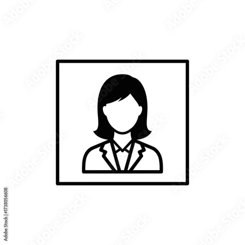 person, avatar, icon, silhouette, outline, user, businesswoman, female, head shot, symbol, graphic, representation, minimalist, simple, design, face, communication, human, identity, neutral, signs, illustration, web, modern, formal, clean, isolated, employee, business, portrait, shape, profession, square, professional, cyberspace, website, profile, social, media, contact, logistic, e-business