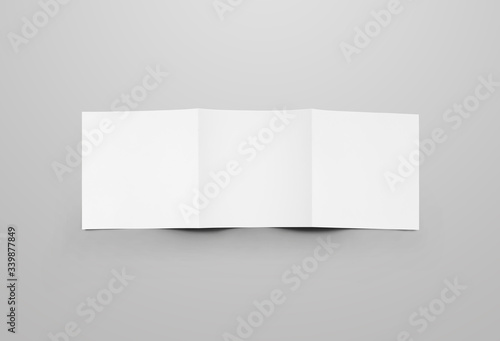 Square white trifold blank white cover mockup, back view, standard open brochure, for design presentation.
