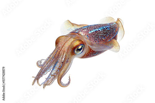 squid, cephalopod, marin, life, ocean, sea, underwater, animal, creature, wildlife, nature, aquatic, invertebrate, tentacle, bioluminescence, mollusc, cuttlefish, octopus, seafood, food, cookery, delicacy, fresh, raw, swimming, isolated, white, background, transparent, studio, shot, macro, detail, cute, small, juvenile, baby, young, education, biology