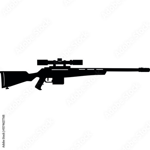 rifle, firearm, weapon, gun, illustration, isolated, white background, military, combat, sharpshooter, long range, precision, shooting, target, aim, scope, stock, trigger, barrel, defense, attack, warfare, technology, design, clip, bullet, munition, firepower, marksman, soldier, army, equipment, gear, weaponry