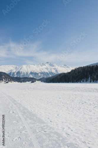 St. Moritz, St. Moritzersee, Engadin, Oberengadin, Eisfläche, Stazerwald, Schafberg, Pontresina, Winter, Wintersport, Winterwanderung, Alpen, Graubünden, Schweiz