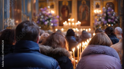 church, service, saint nicholas, candle, icon, faith, tradition, heritage, winter, coat, people, gathering, spiritual, catholic, orthodox, ceremony, holiday, festive, december, ritual, sacred, holy, atmosphere, glowing, religion, worship, cultural, prayer, interior, peaceful, authentic, traditional, congregation, holiday season, rustic, devotion, european, candlelight, winter holiday