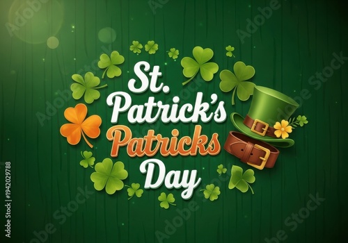 st, day, shamrock, clover, leaf, green, hat, celebration, holiday, festival, party, luck, lucky, ireland, irish, culture, tradition, symbol, graphic, art, design, typography, text, font, style, colourful, bright, cheerful, playful