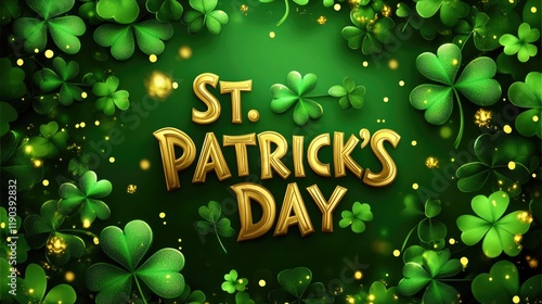 St. patrick's day celebration with vibrant green clovers and golden sparks. Saint Patrick's Day, St Paddy's Day, St Patty's Day - Irish National Holiday and Cultural Celebration