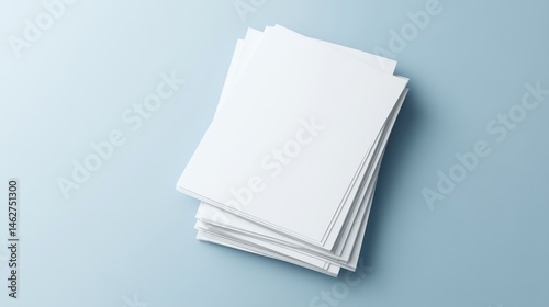 Stack of Blank Sheets of Paper on a Light Blue Background for Creative Use