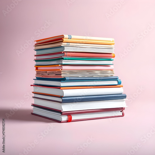 Stack of Books Illuminated on a Minimalist Pink Background.