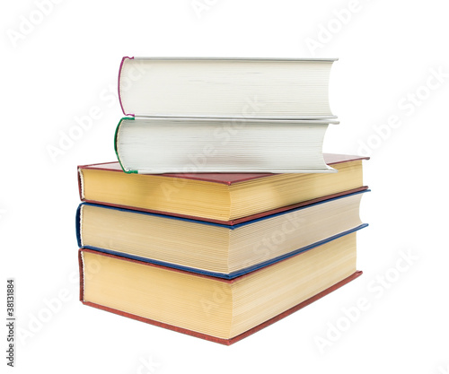 stack of books on white background close-up