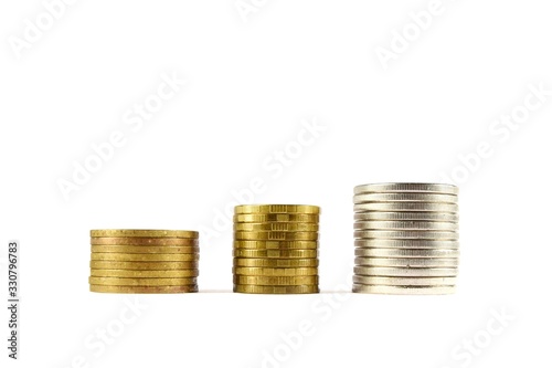 stack of coins isolated on white background