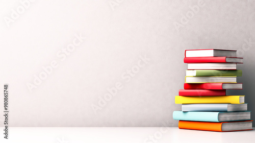 book, book, stack, blank, colours, colourful, wall, white, table, education, learning, cognition, wisdom, literature, read, reading, study, studying, library, school, college, university, textbook, paper, cover, page, text, information, learn, growth, potential, intelligence, creativity, imagination, back, copy, space, background, nobody, indoor, front, view, horizontal, leaning, vibrant, diverse, academic, research, novel