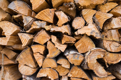 Stack of firewood for rough texture background