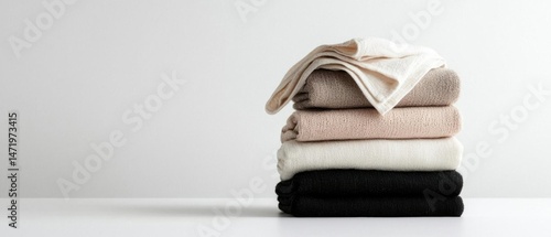 stack, folded, towel, white, surface, neatly, stacked, towel, beige, colours, soft, textured, fabric, black, arranged, background, plain, aesthetic, minimalistic, clean, minimalism