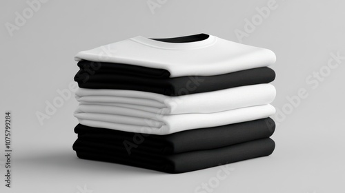 t-shirt, t-shirt, clothing, apparel, fashion, stack, folded, white, black, cotton, fabric, grey, background, minimalist, simple, clean, style, casual attire, comfortable, basic, design, sleeve, neckline, soft, smooth, texture, smoothness, colours, contrast, neat, organised, layout, product, display, visual, photo, studio